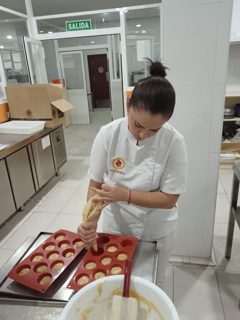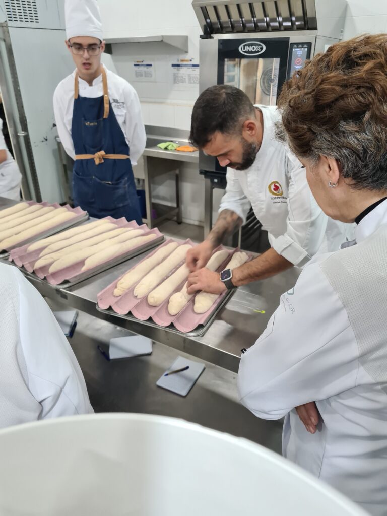 Los dueños de la famosa panadería-pastelería La Cremita, Daniel Ramos y Ángeles Aido, visitaron las instalaciones del Ciclo de Cocina de nuestro centro el pasado 5 de diciembre para impartir una clase magistral sobre la elaboración de diversos tipos de panes, el efecto del amasado, la hidratación, los tiempos de reposo y la cocción en función de cada tipo de pan. Ubicados en la localidad gaditana de Chiclana de la Frontera, han conquistado ya multitud de paladares, abasteciendo a más de 120 supermercados y restaurantes como El Corte Inglés y El Campero.