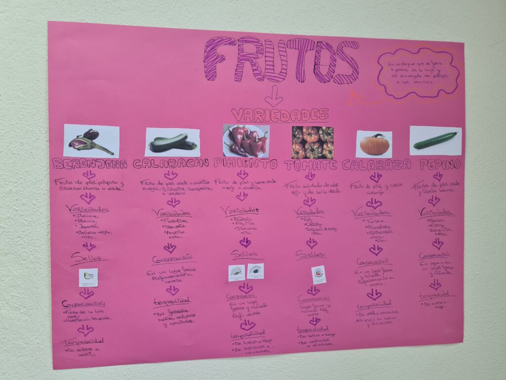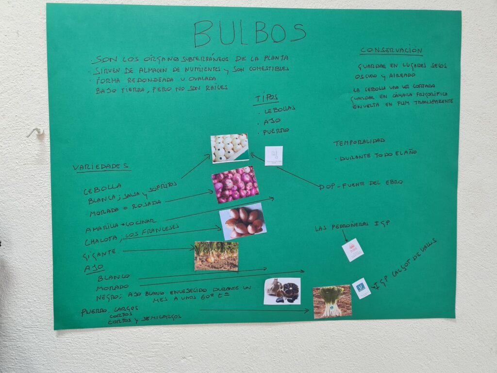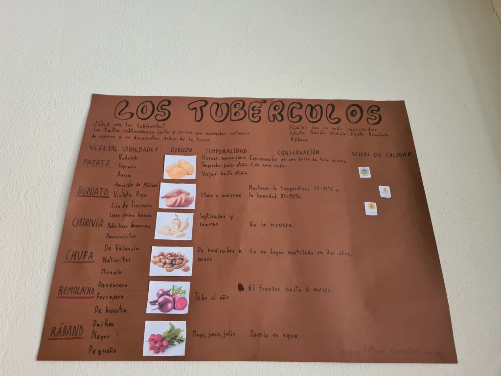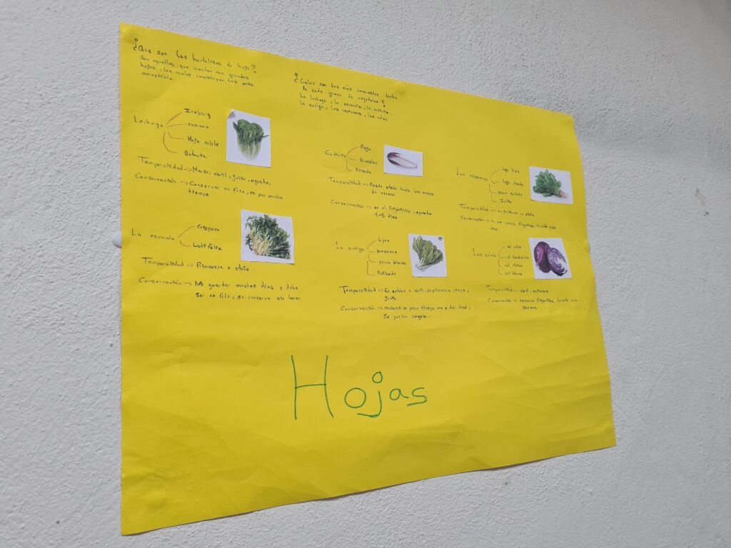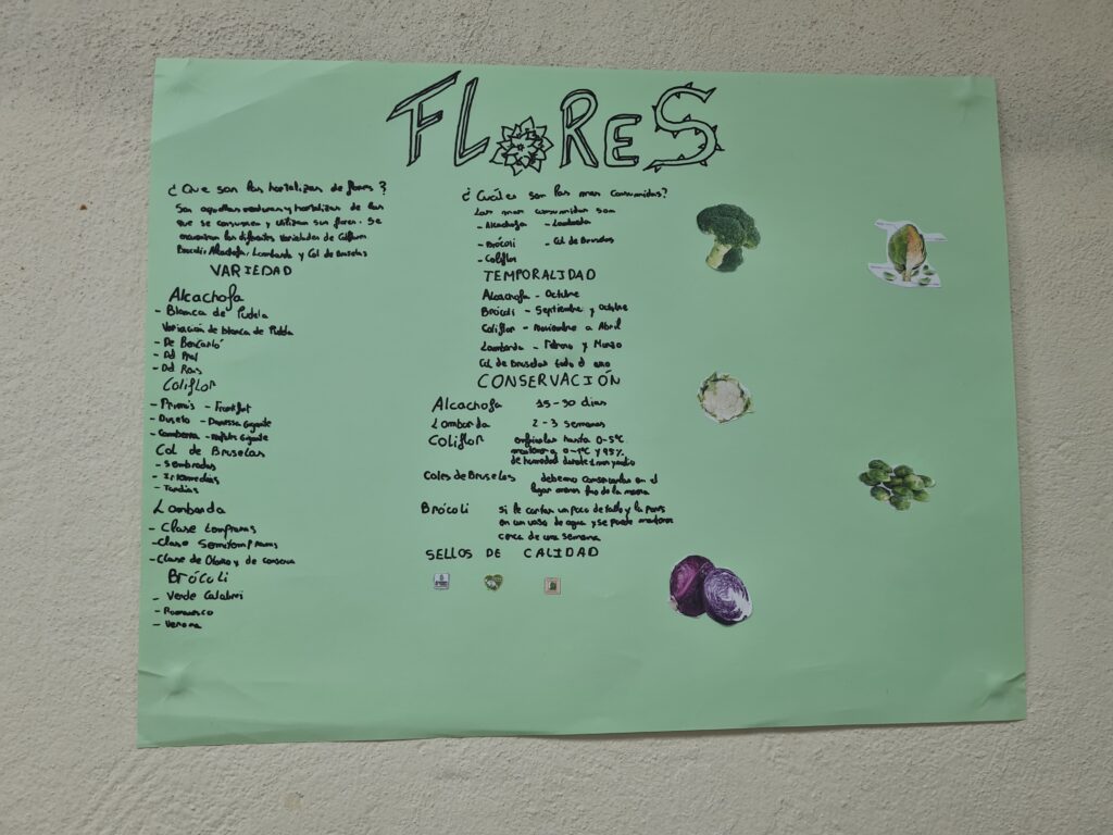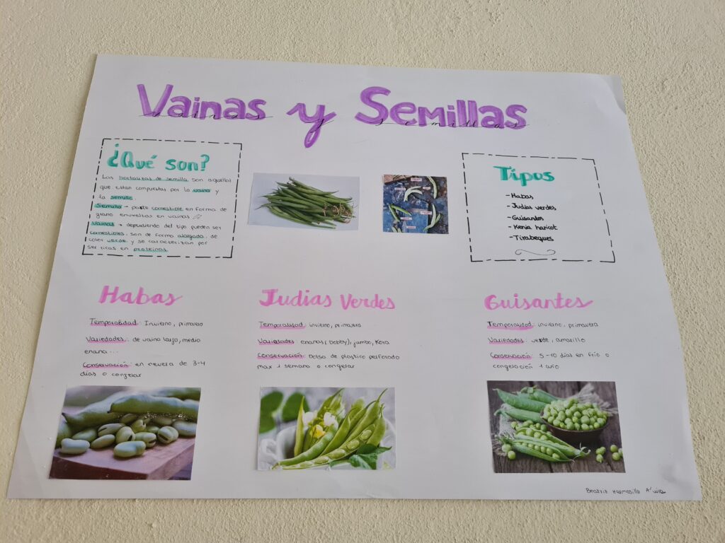 El alumnado de 1º del Ciclo Formativo de Grado Medio en Cocina y Gastronomía ha realizado un trabajo colaborativo que ha consistido en la elaboración de un mural sobre las partes comestibles (hojas, frutos, vainas…) de diferentes vegetales. Esta actividad se inserta dentro del módulo profesional de preelaboración y conservación de alimentos y ha sido supervisada por el profesor Valerio Peña.