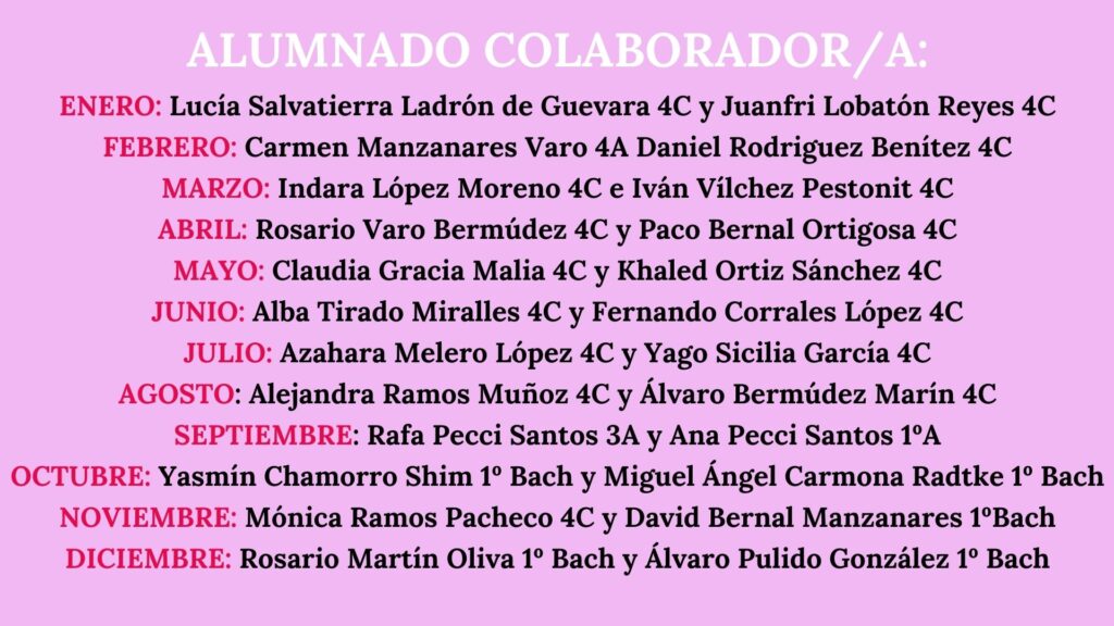 Cada mes refleja una imagen de nuestro alumnado que inspira dos valores básicos para construir un amor saludable.